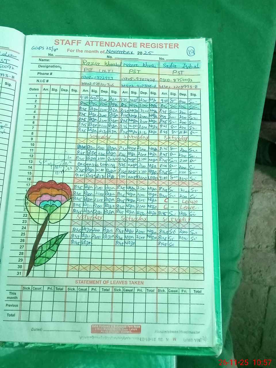 | Name: Na**** Kh**** Designation: (School Headmaster's/Headmistress's) PST Phone/Cell Number: 03**** |