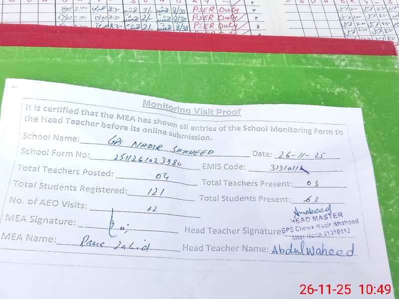 | Attendance Register | Head Teacher | MEA with School | Visit Proof |