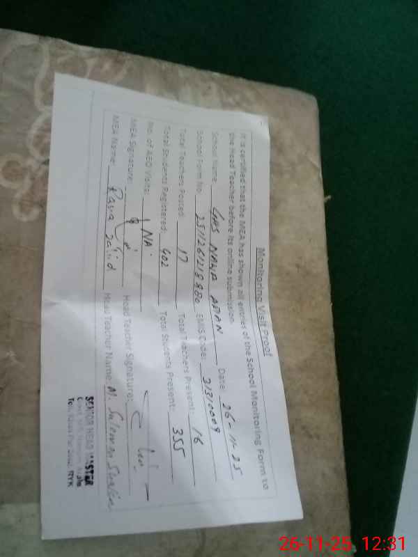 | Certified that this School was Inspected by the Undersigned MEA/DMO Today and the Information Stated Above is as Per Record. | |||||