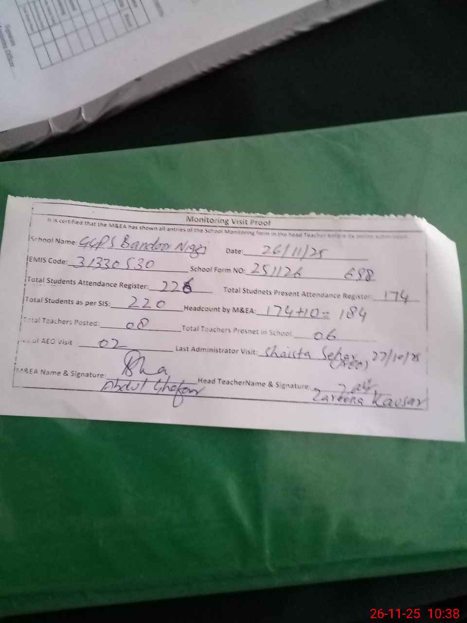 | EMIS Code: 31330530 | Name of School: GGPS BANDOOR NIAZI | |||