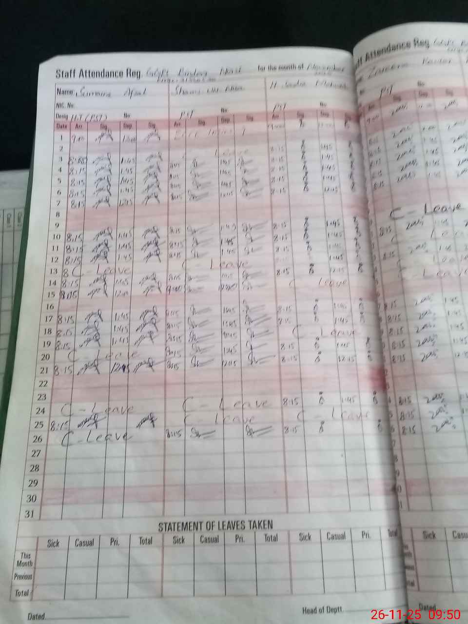 | 31**** | Su**** Af**** | ESE Science/Maths | Regular | 0 | 0 | 0 | 0 | 0 | 0 | 0 | 0 | 0 | Casual |
