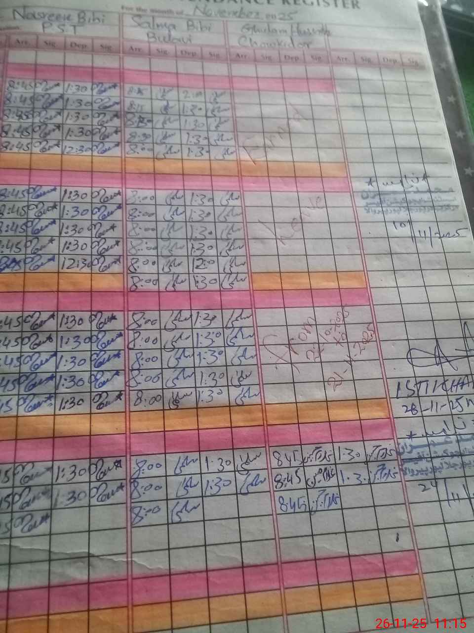 | CNIC | Full Name | Designation | R/C | Absence During Last Calender Month |