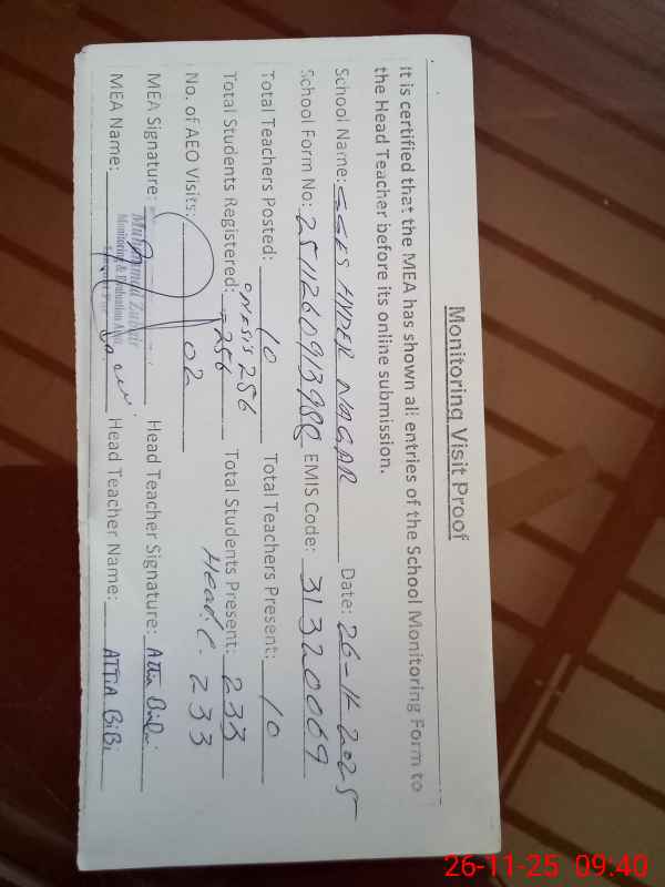 | Certified that this School was Inspected by the Undersigned MEA/DMO Today and the Information Stated Above is as Per Record. | |||||