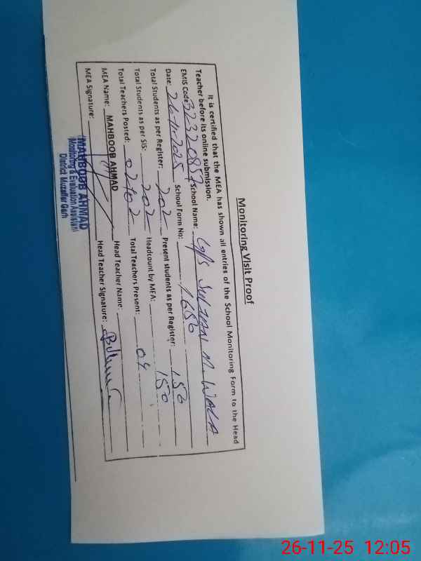 | EMIS Code: 32320857 | Name of School: GPS SULTAN MEHMOOD WALA | |||