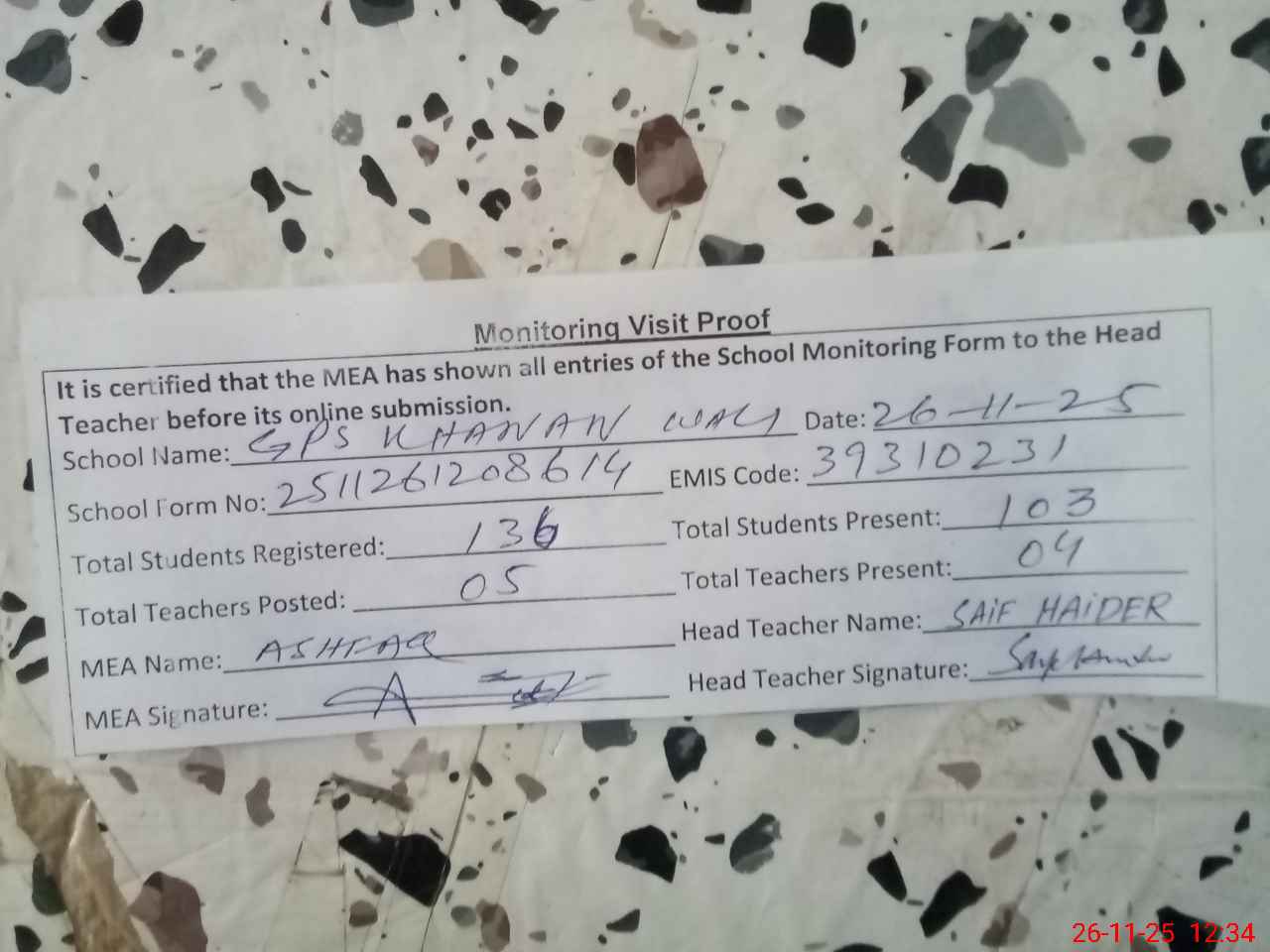 | EMIS Code: 39310231 | Name of School: GPS KHANAN WALI HUJRA | |||