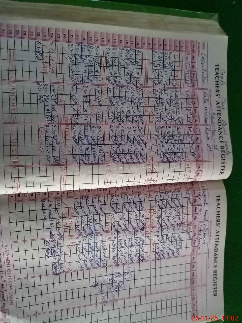 | Leave | Duty | Absent | Maternity | Medical | Ex- Pak |