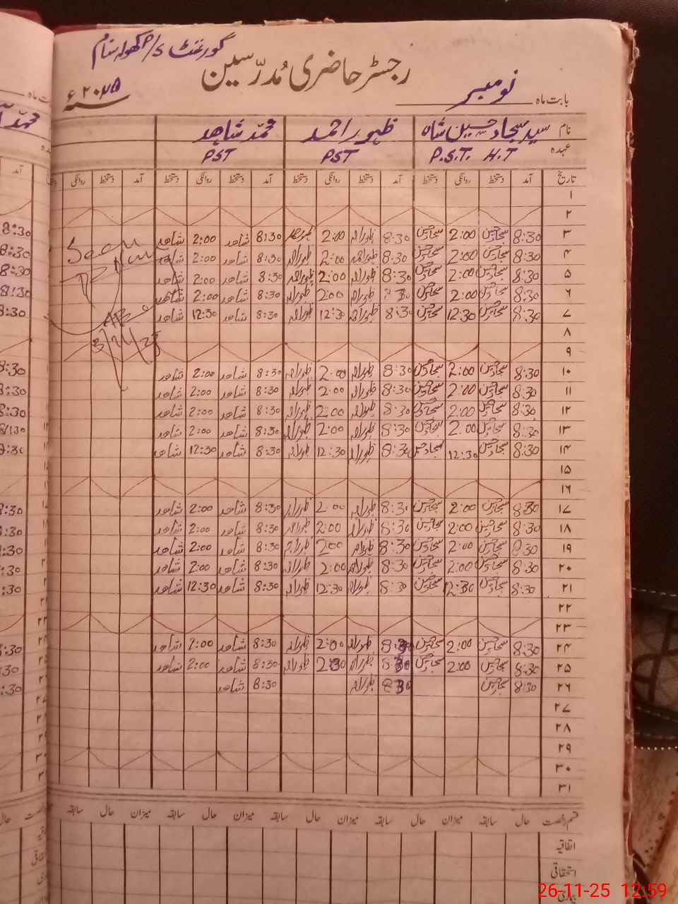 | Name: Sy**** Sa**** Hu**** Sh**** Designation: (School Headmaster's/Headmistress's) PST Phone/Cell Number: 03**** |