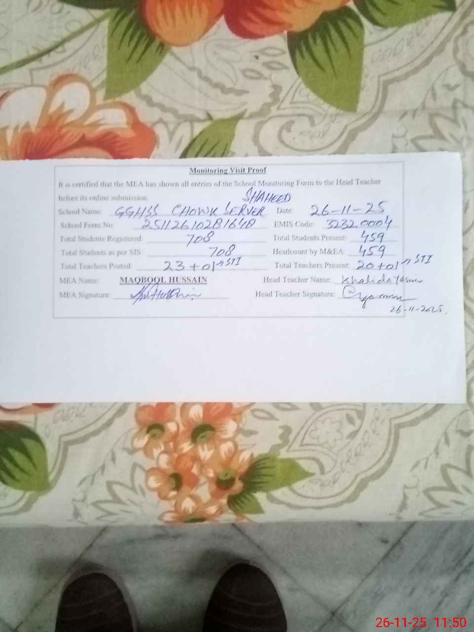 | EMIS Code: 32320004 | Name of School: GGHSS CHOWK SARWAR SHAHEED | |||