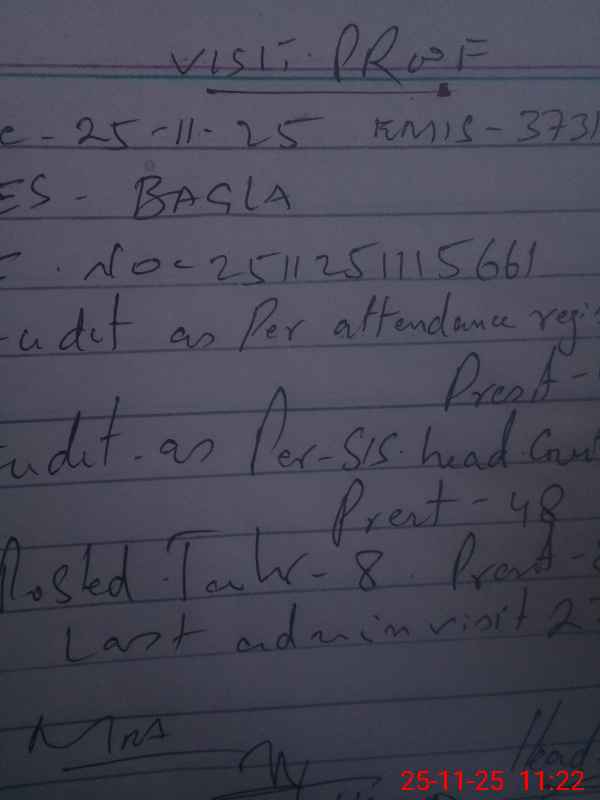 | Monitoring Date: 25-11-2025 | Start Time: 25-11-2025 11:01 AM | End Time: 25-11-2025 11:41 AM | Name of MEA: Ab**** Ha**** | |