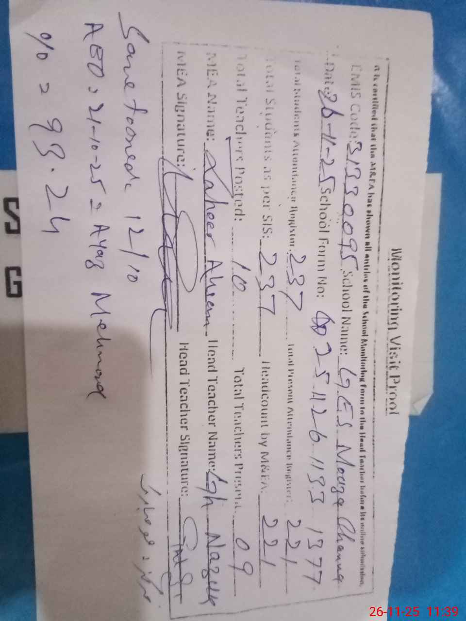 | Monitoring Date: 26-11-2025 | Start Time: 26-11-2025 10:45 AM | End Time: 26-11-2025 11:49 AM | Name of MEA: Za**** Ah**** | |