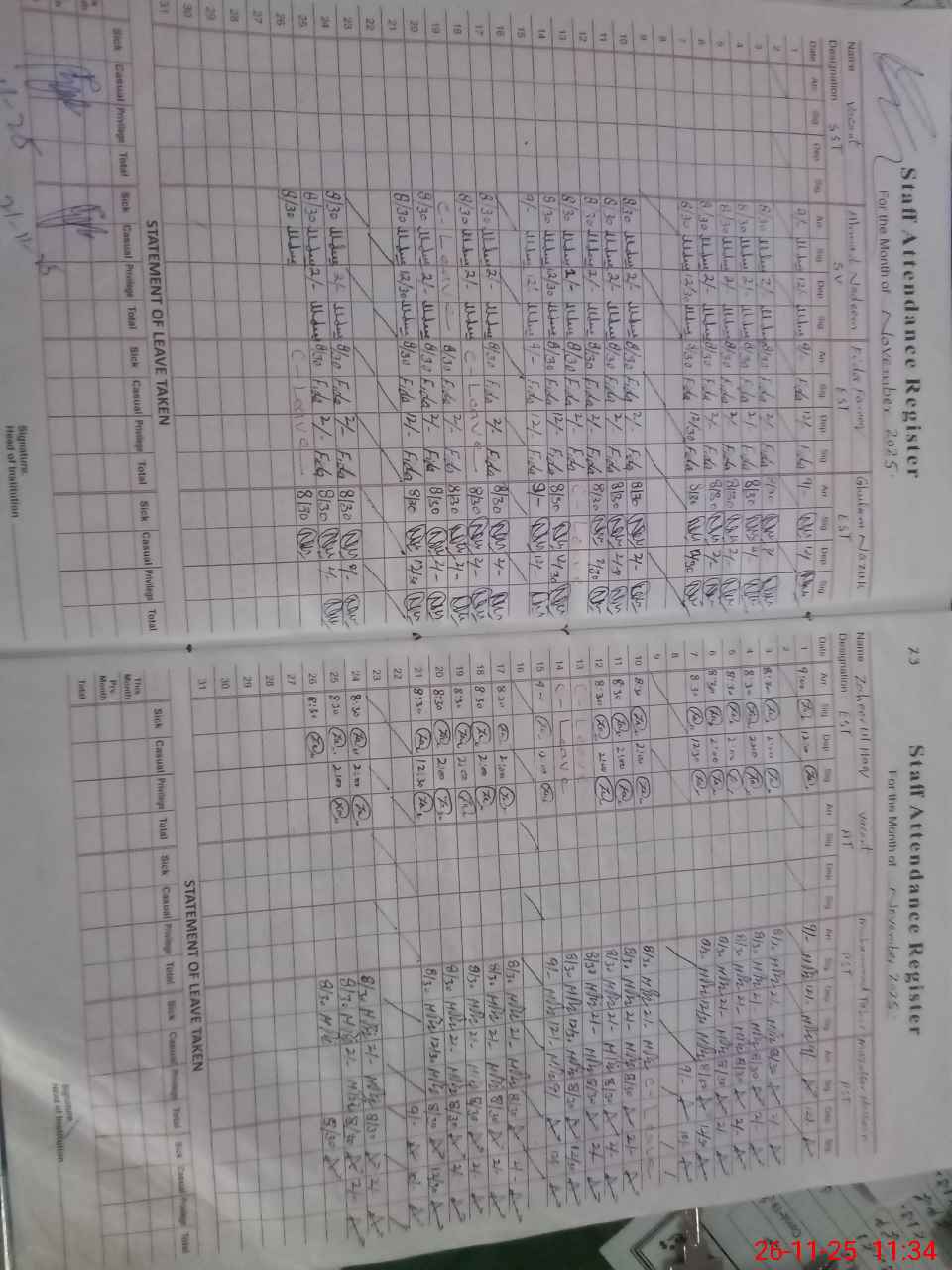 | No. of Students Present - Female | 0 | 0 | 0 | 0 | 0 | 0 | 0 | 0 | 0 | 0 | 0 | |||||