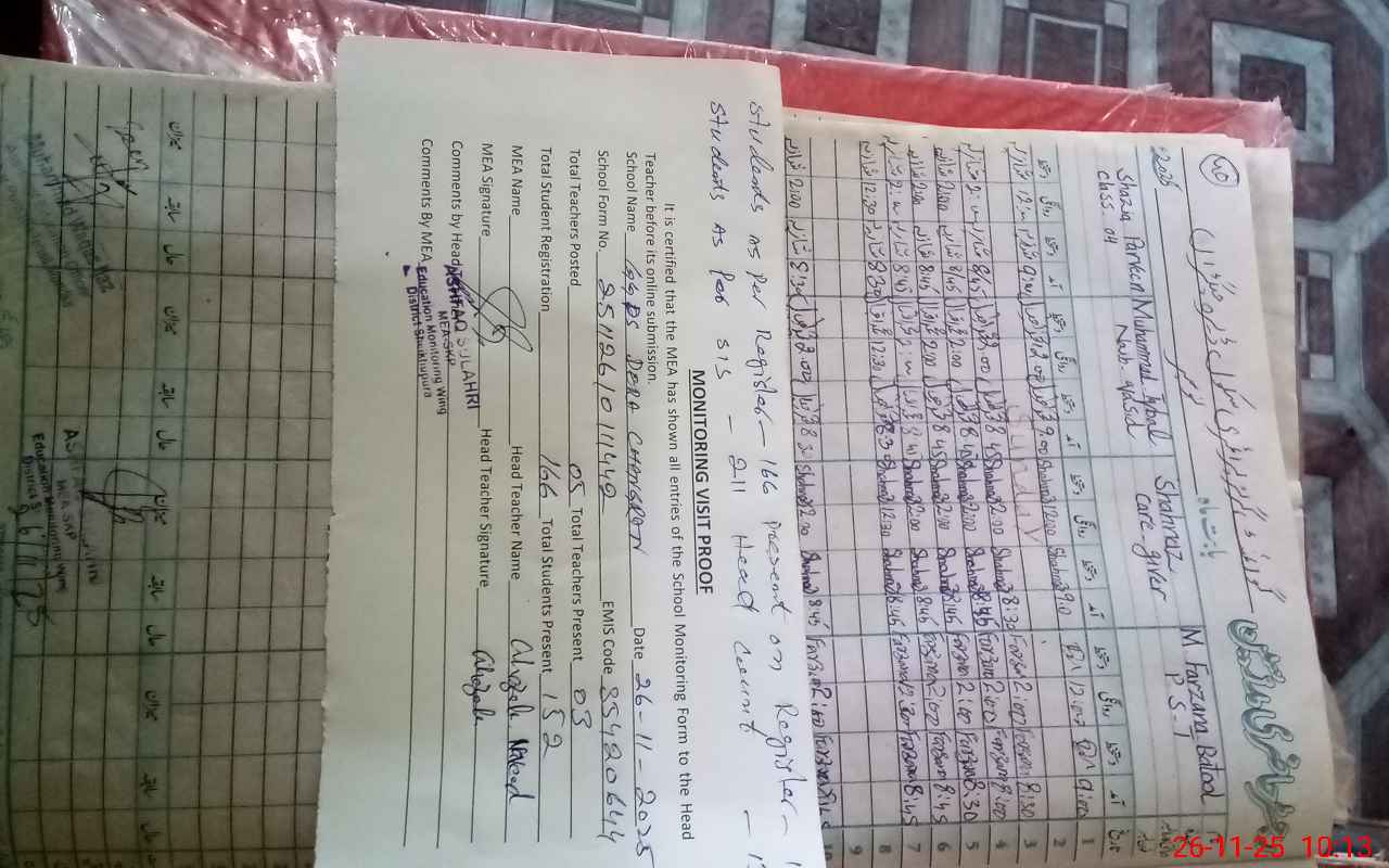 | Attendance Register | Head Teacher | MEA with School | Visit Proof |