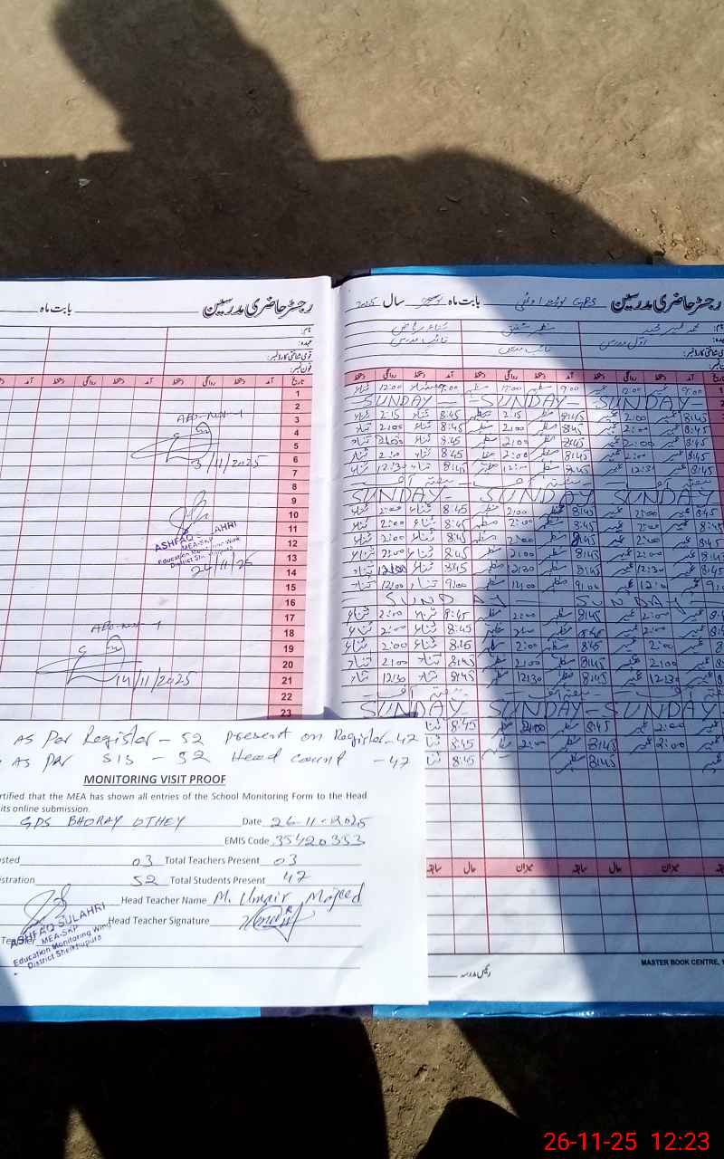 | EMIS Code: 35420353 | Name of School: GPS BHORAY OTHEY | |||