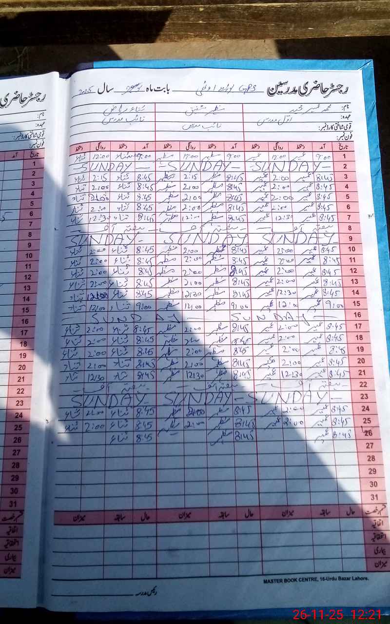 | Name: Mu**** Um**** Designation: (School Headmaster's/Headmistress's) PST Phone/Cell Number: 03**** |