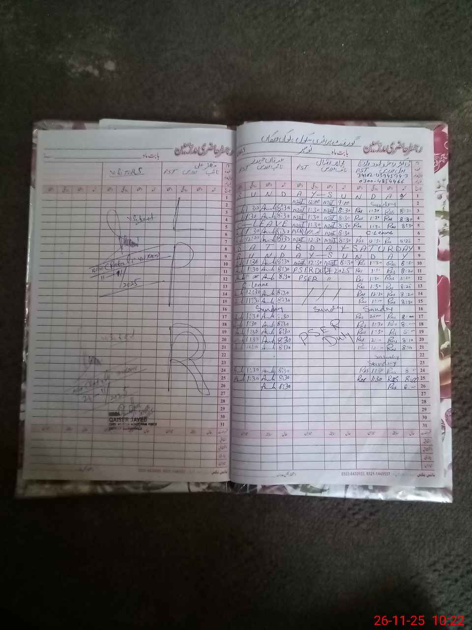 | CNIC | Full Name | Designation | R/C | Absence during last cal. month |