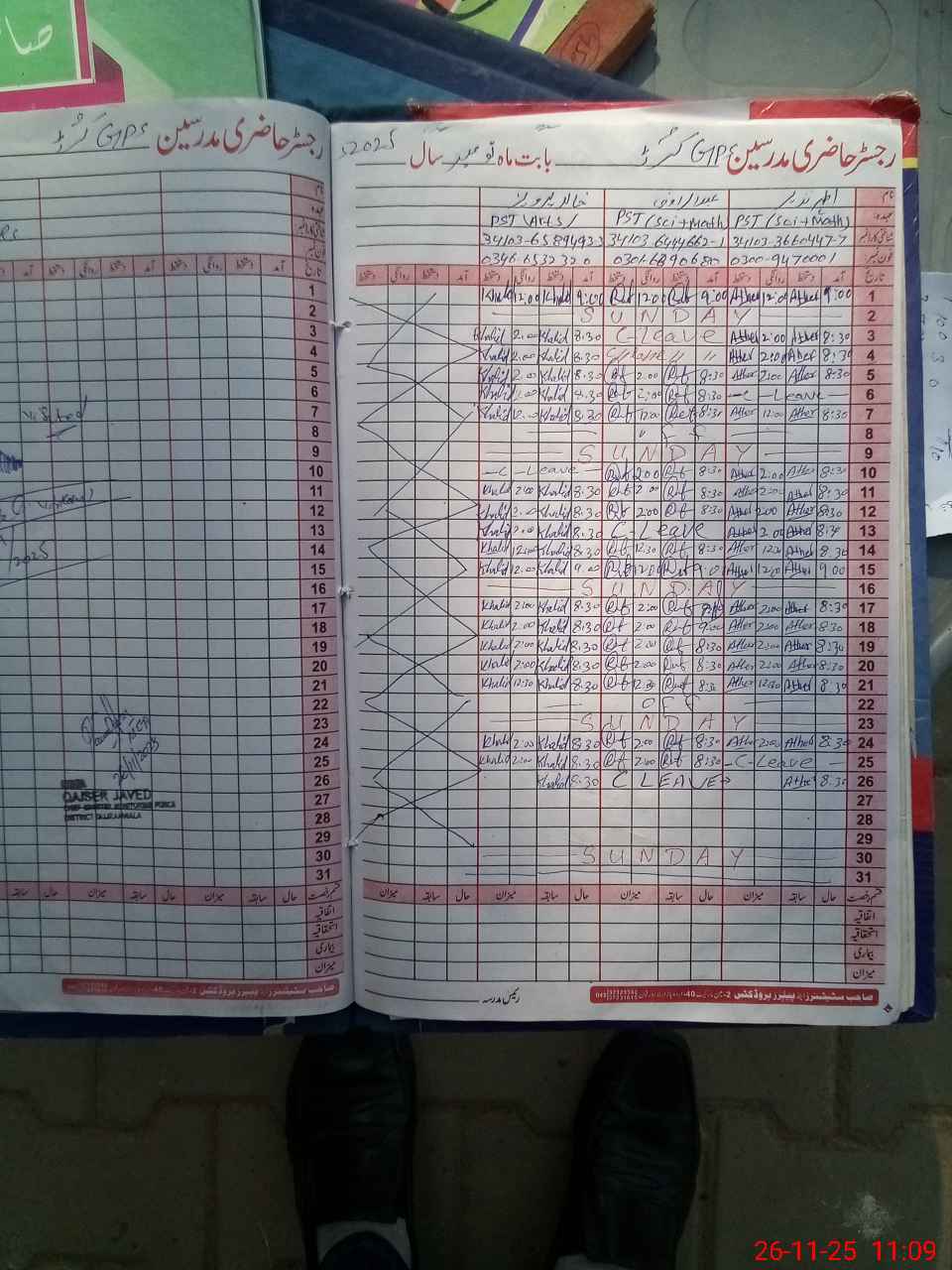 | Name: AT**** NA**** Designation: (School Headmaster's/Headmistress's) PST Phone/Cell Number: 03**** |