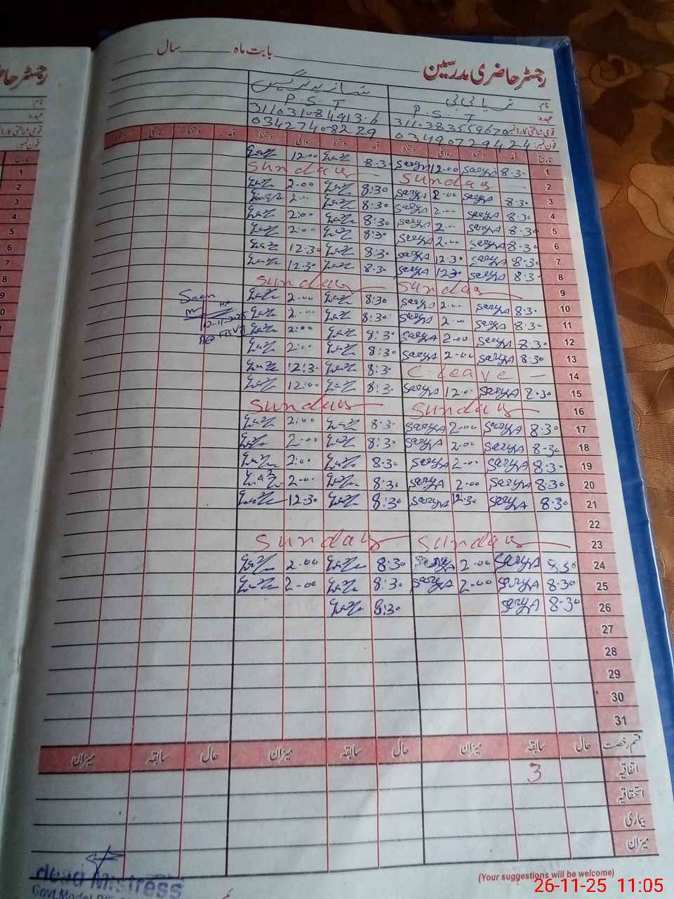 | Name: Su**** Bi**** Designation: (School Headmaster's/Headmistress's) PST Phone/Cell Number: 03**** |