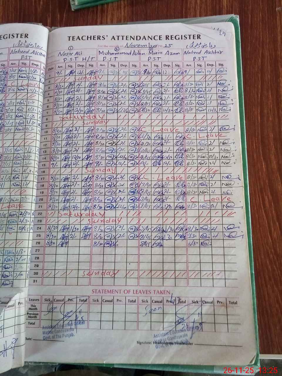 | Name: NA**** AL**** Designation: (School Headmaster's/Headmistress's) PST Phone/Cell Number: 03**** |