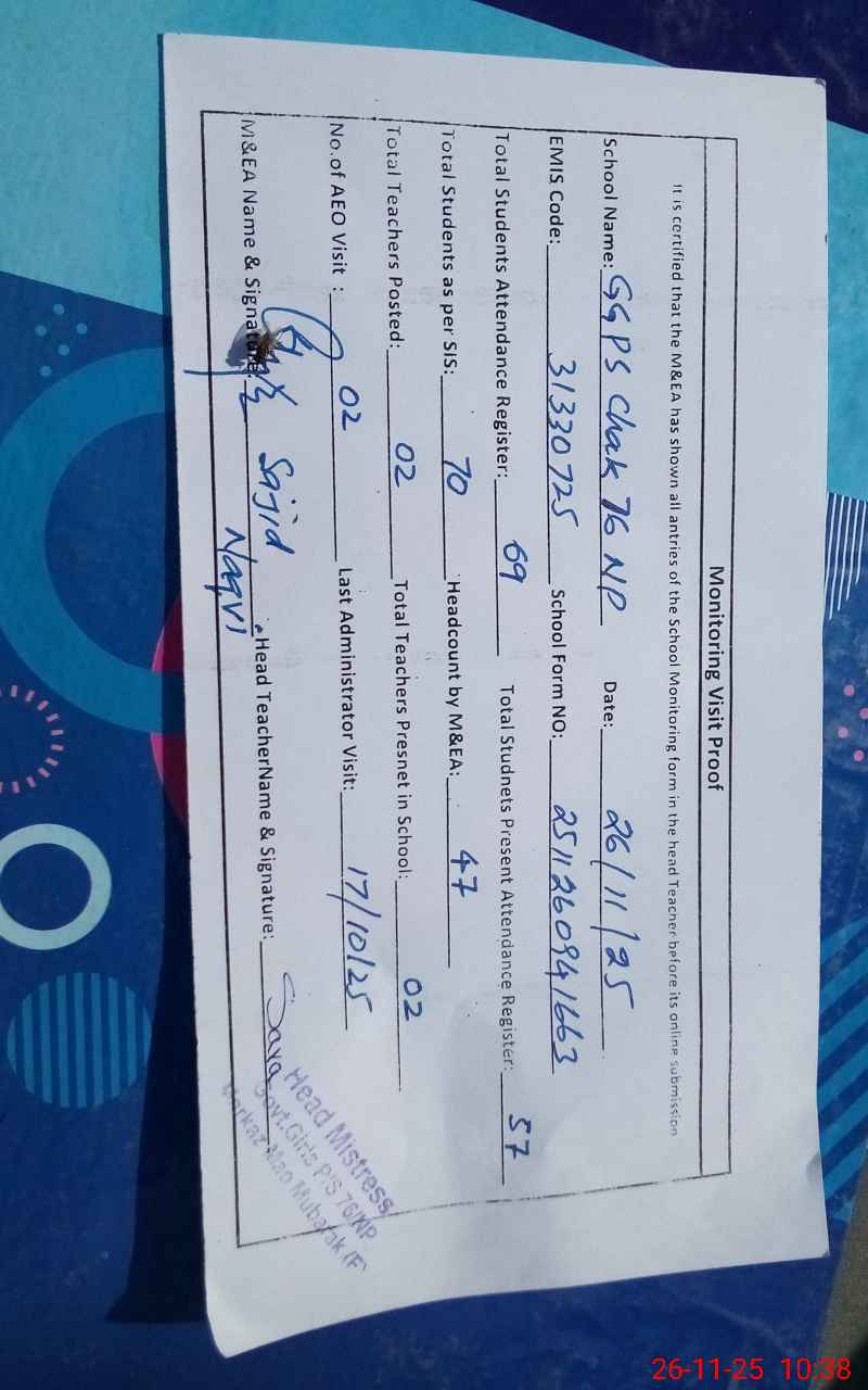 | EMIS Code: 31330725 | Name of School: GGPS CHAK NO.76/NP | |||