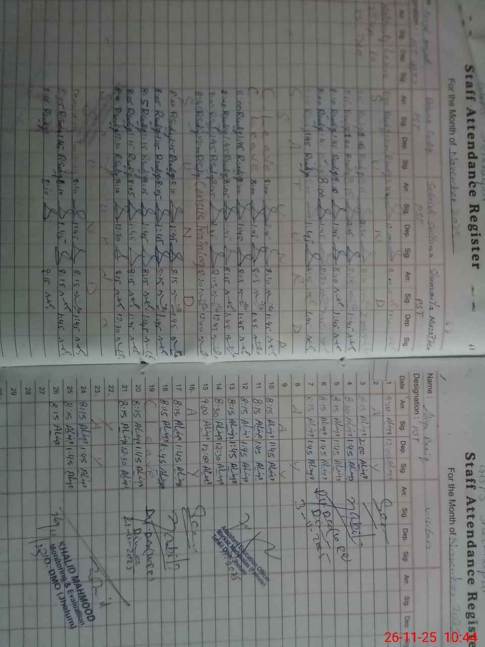 | CNIC | Full Name | Designation | R/C | Absence During Last Calender Month |