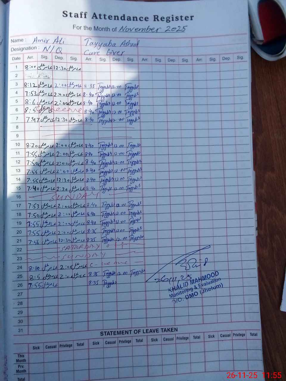 | Monitoring Date: 26-11-2025 | Start Time: 26-11-2025 11:18 AM | End Time: 26-11-2025 12:22 PM | Name of MEA: KH**** ME**** | |