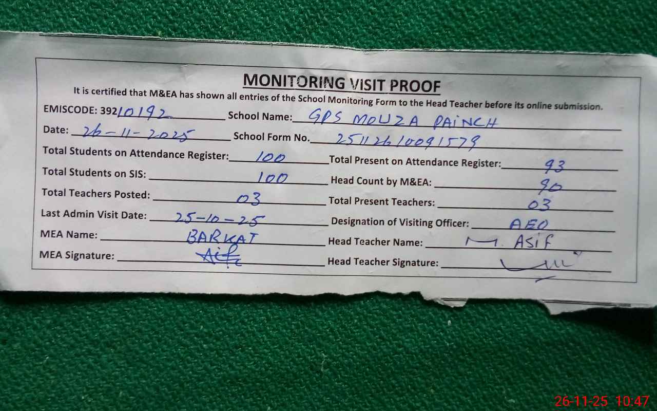 | EMIS Code: 39210192 | Name of School: GPS MOUZA PAINCH PO PAKPATTAN | |||