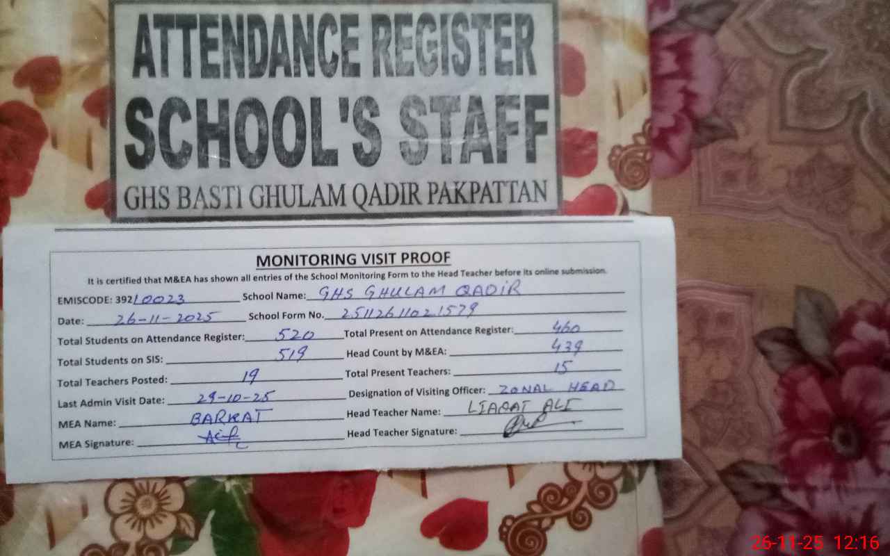| EMIS Code: 39210023 | Name of School: GHS GHULAM QADIR | |||