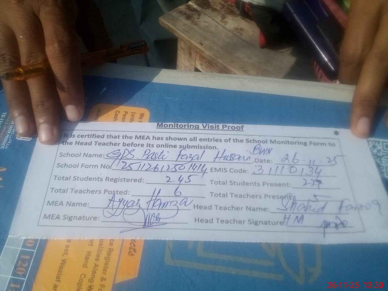 | EMIS Code: 31110134 | Name of School: GPS BASTI FAZAL HUSAIN | |||