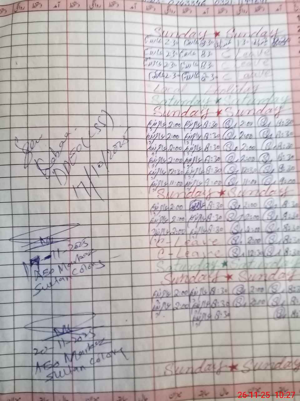 | Leave | Duty | Absent | Maternity | Medical | Ex- Pak |