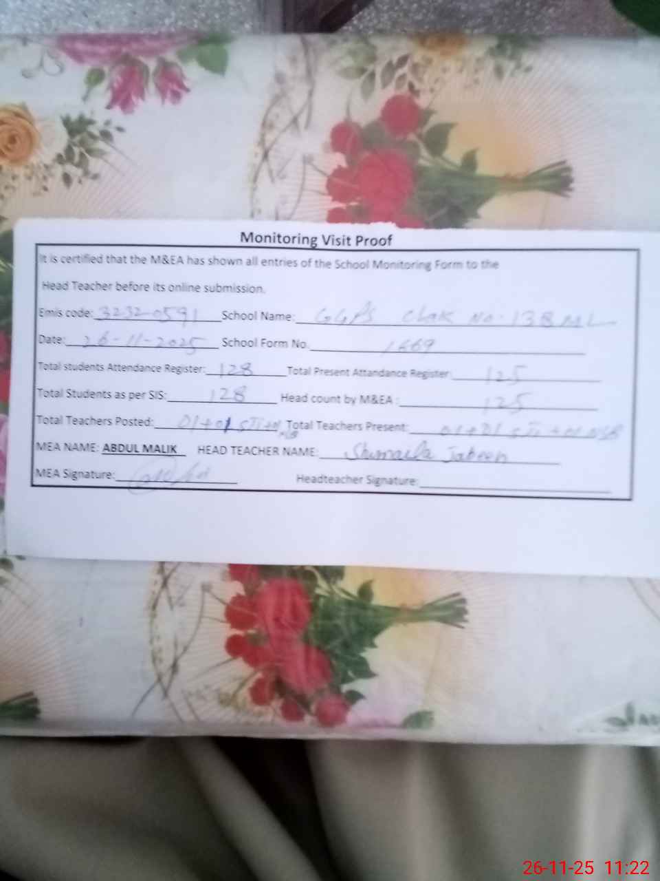 | EMIS Code: 32320591 | Name of School: GGPS CHAK NO. 138/ML | |||