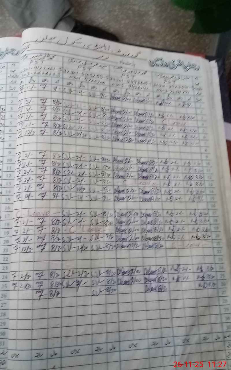 | CNIC | Full Name | Designation | R/C | Absence During Last Calender Month |