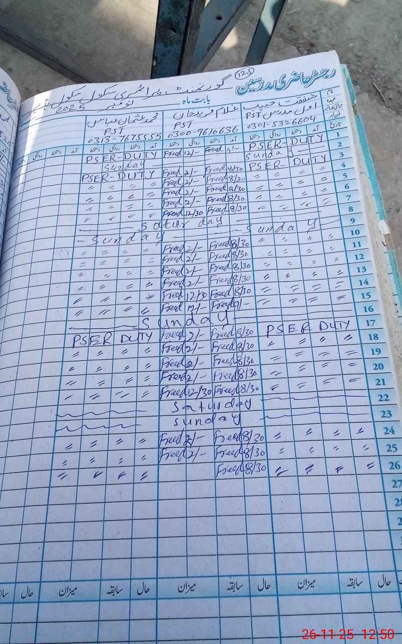 | Name: Sh**** Ha**** Designation: (School Headmaster's/Headmistress's) PST Phone/Cell Number: 03**** |