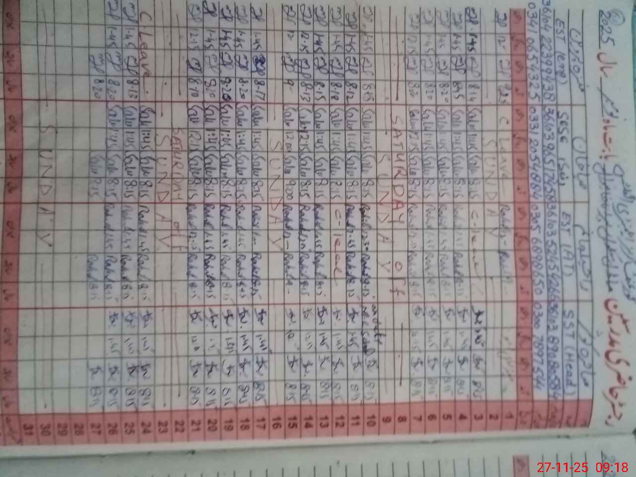 | 32**** | So**** Sa**** | PST | Regular | 3 | 0 | 0 | 0 | 0 | 0 | 0 | 0 | 3 | Casual |