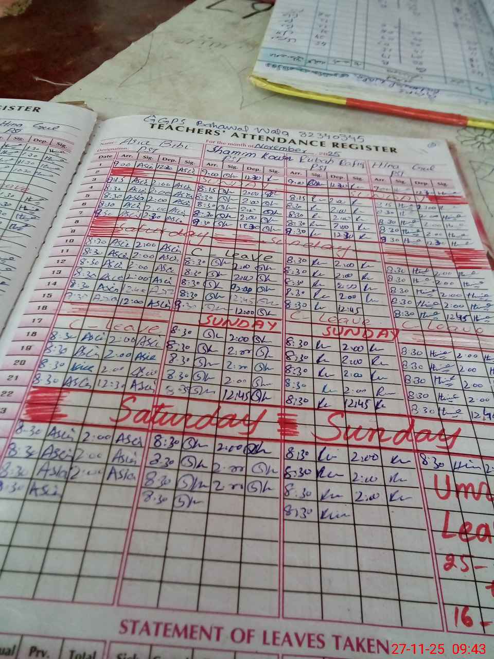 | Name: AS**** BI**** Designation: (School Headmaster's/Headmistress's) PST Phone/Cell Number: 03**** |