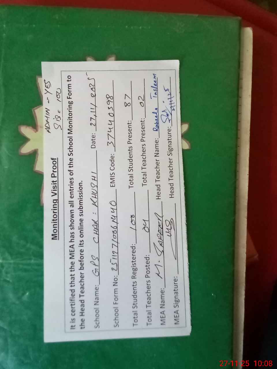 | EMIS Code: 37440398 | Name of School: GPS CHAK KHUSHI | |||