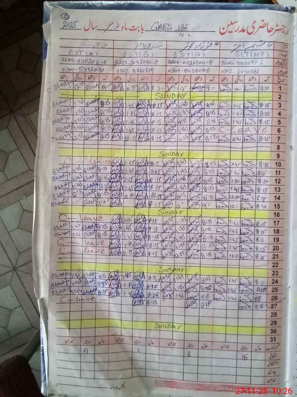 | 36**** | Iq**** Al**** | PST | Regular | 3 | 0 | 0 | 0 | 0 | 0 | 0 | 0 | 3 | Casual |