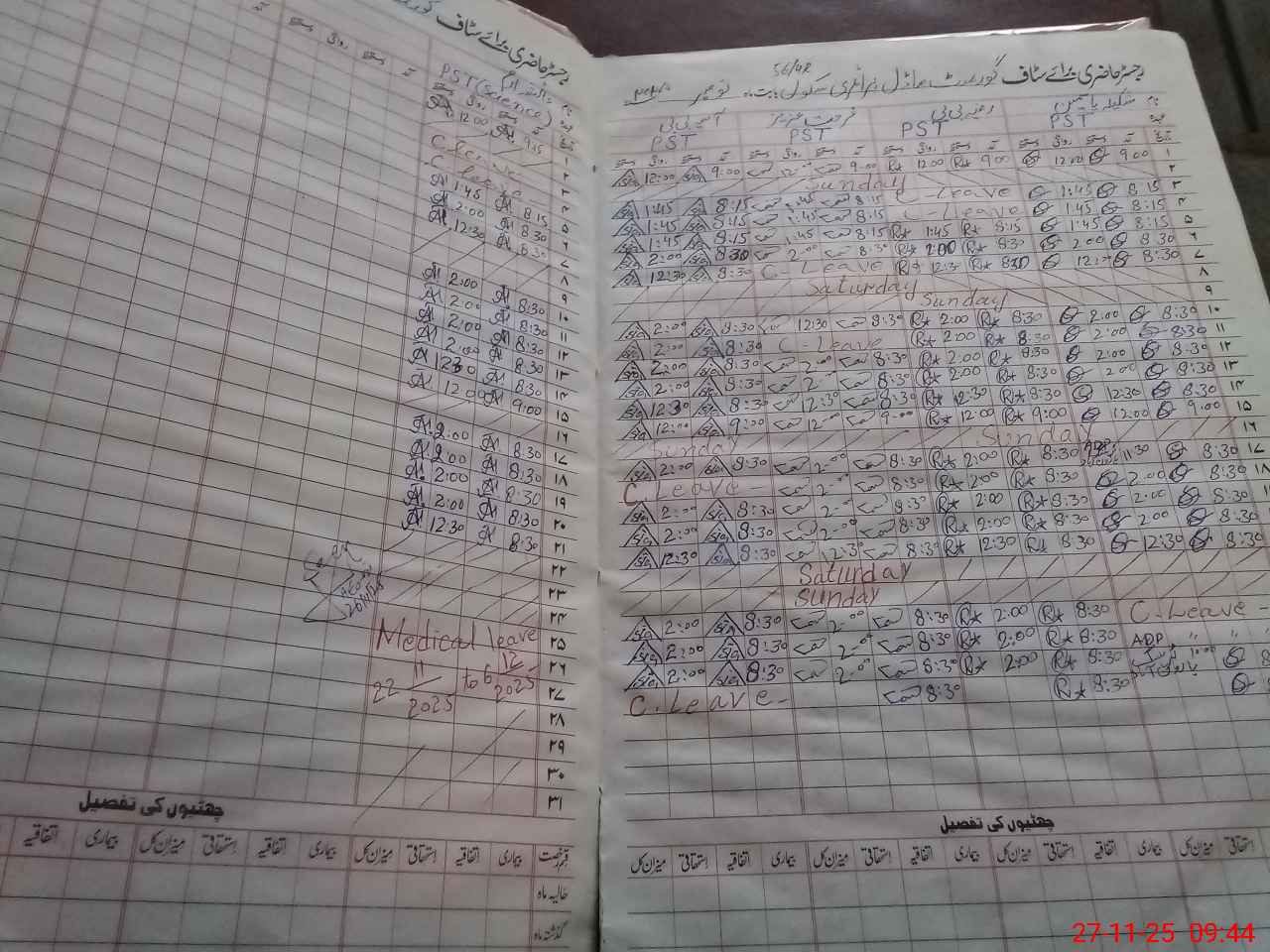 | Leave | Duty | Absent | Maternity | Medical | Ex- Pak |