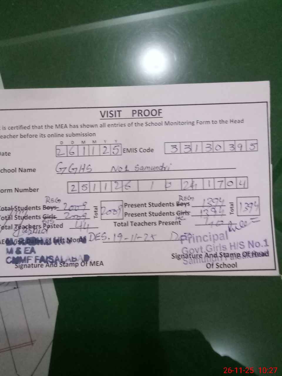 | EMIS Code: 33130395 | Name of School: GGHS NO. 1 SAMUNDRI | |||