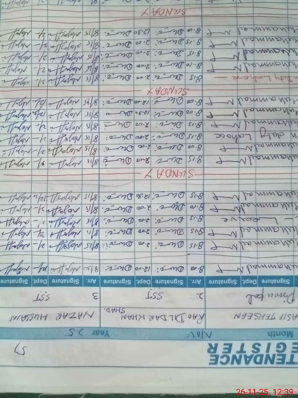 | 33**** | Sy**** Ab**** Hu**** Sh**** | Regular | 1 | 0 | 0 | 0 | 0 | 0 | 0 | 0 | 1 | Casual | |