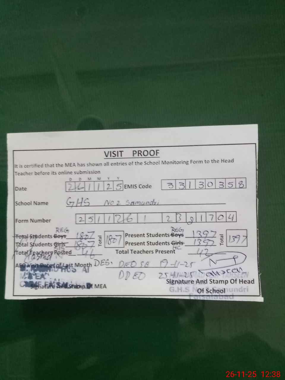 | EMIS Code: 33130358 | Name of School: GHS NO. 2 SAMUNDRI FSD | |||