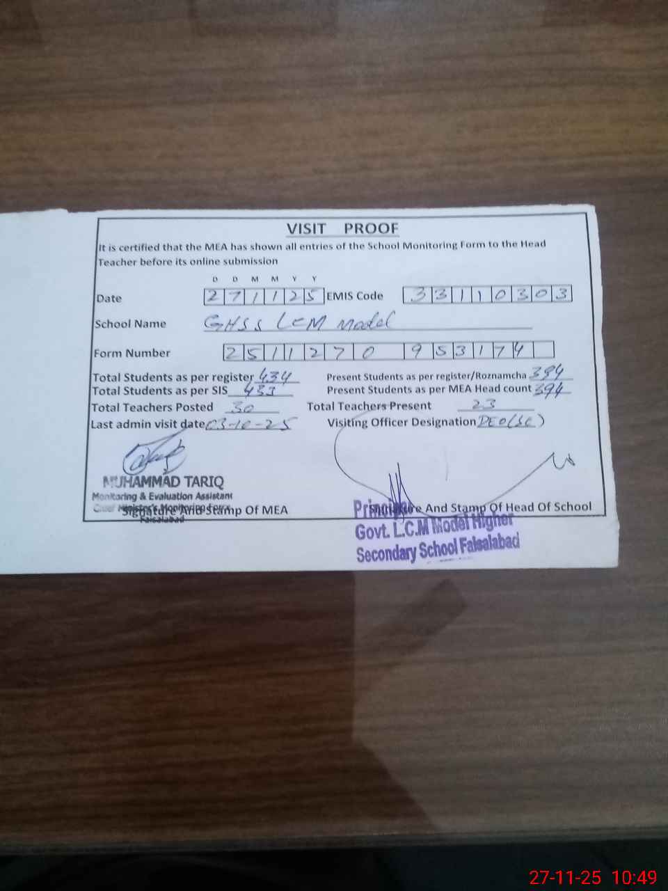 | EMIS Code: 33110303 | Name of School: GHSS LCM MODEL FAISALABAD | |||