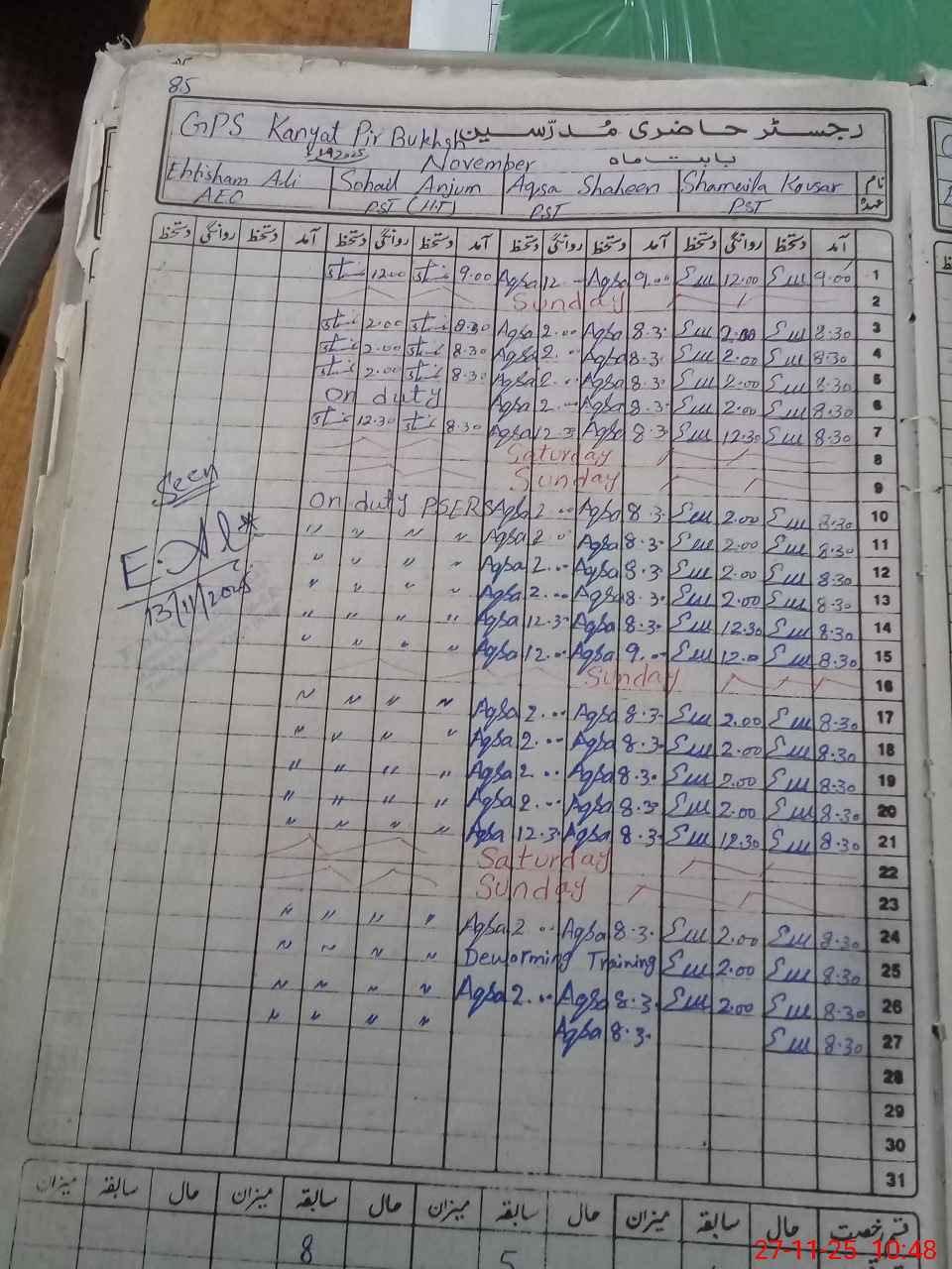 | CNIC | Full Name | Designation | R/C | Absence During Last Calender Month |
