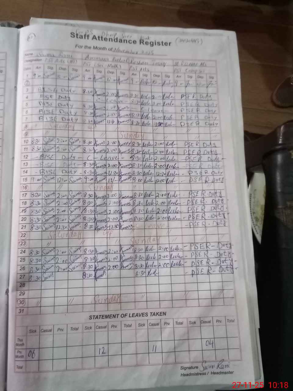 | Name: SA**** RA**** Designation: (School Headmaster's/Headmistress's) PST/PTC/JV Phone/Cell Number: 03**** |