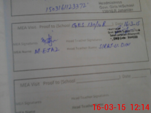 | Certified that this School was Inspected by the Undersigned MEA/DMO Today and the Information Stated Above is as Per Record. | |||||