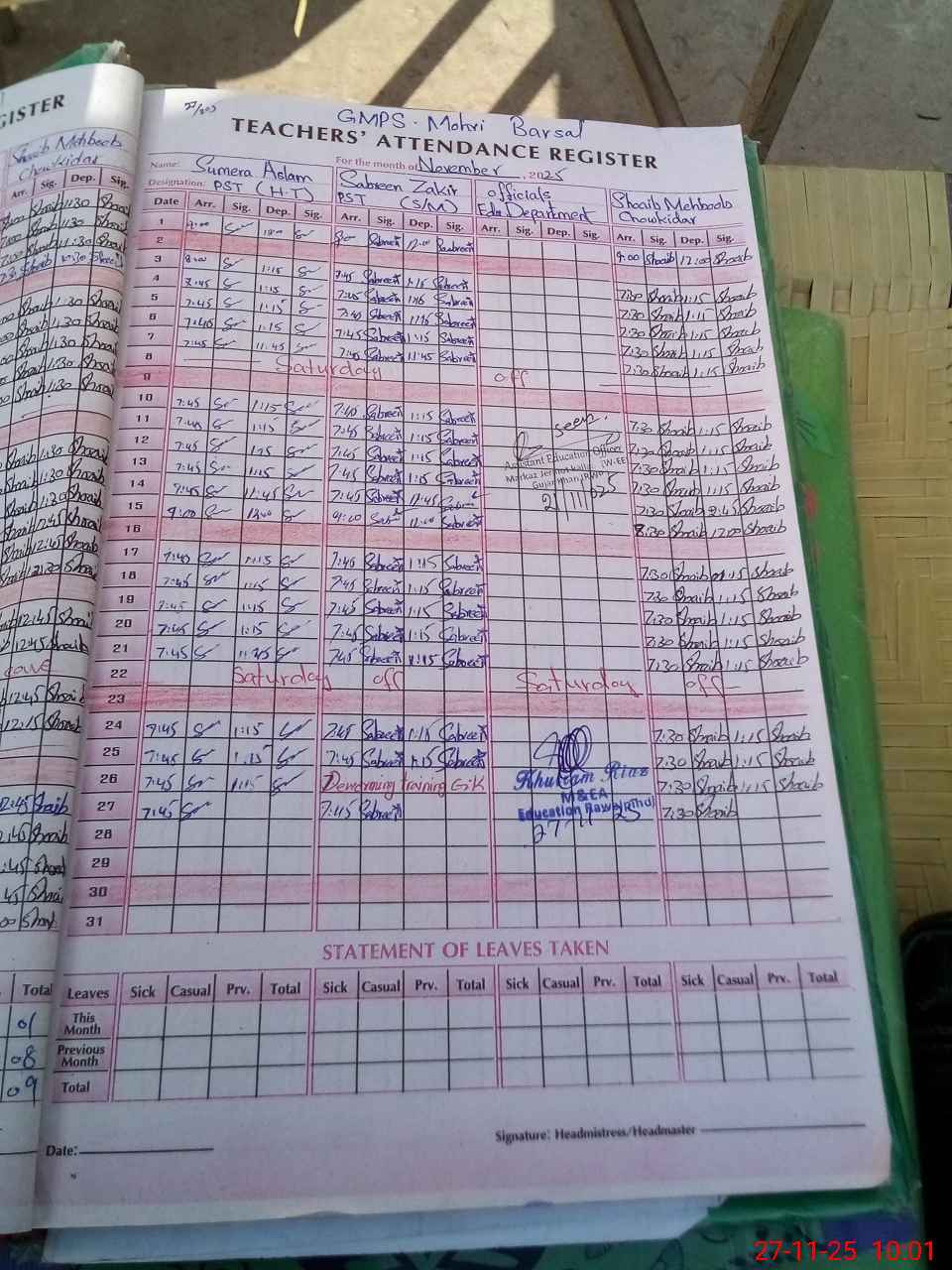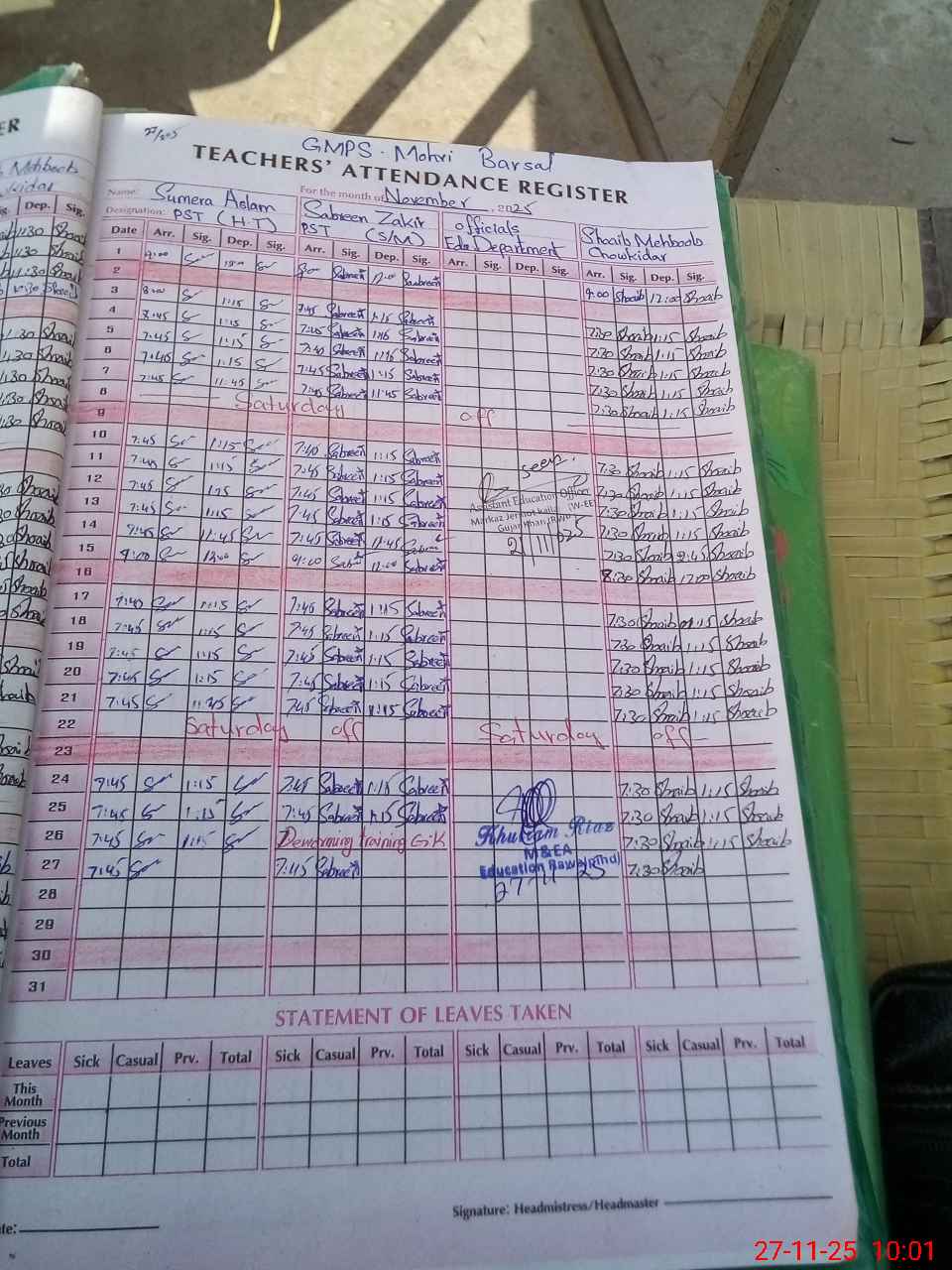 | Monitoring Date: 27-11-2025 | Start Time: 27-11-2025 09:48 AM | End Time: 27-11-2025 10:17 AM | Name of MEA: Kh**** Ri**** | |
