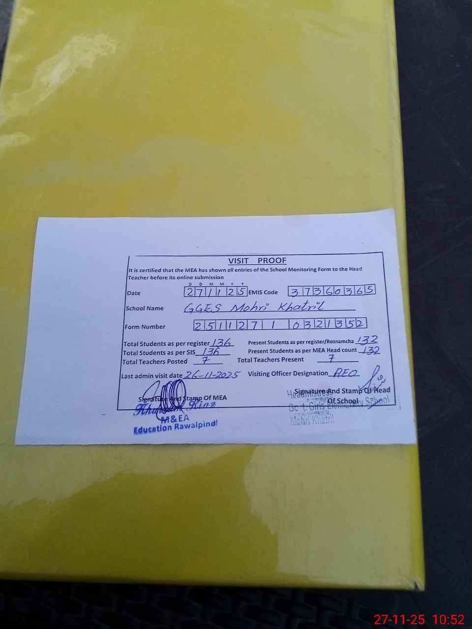 | EMIS Code: 37360365 | Name of School: GGES MOHRI KHATRAIL | |||