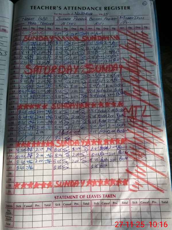 | 38**** | Ta**** Iq**** | NQ | Regular | 0 | 0 | 31 | 0 | 0 | 0 | 0 | 0 | 0 | Absent (Un-Authorized) |