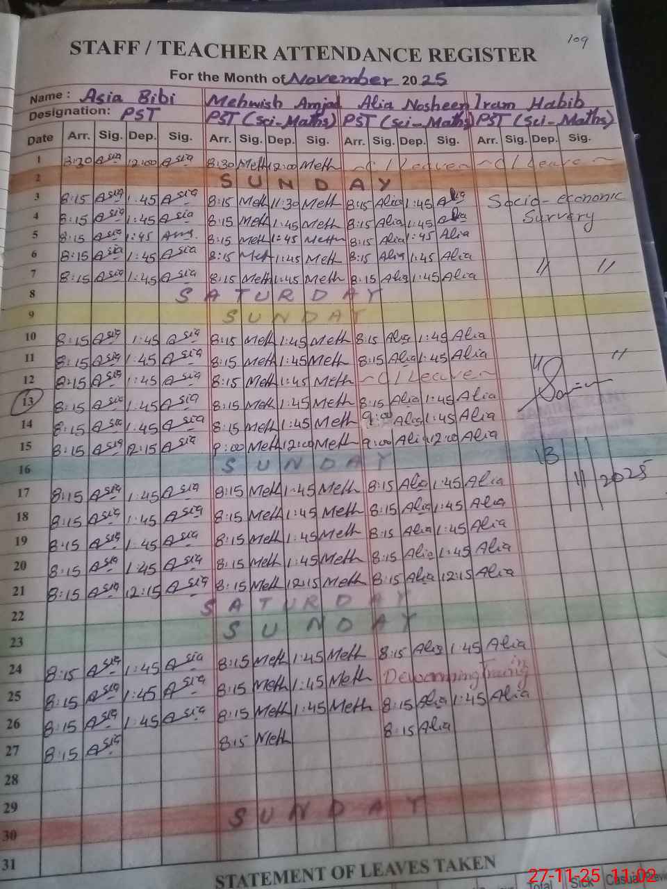 | Name: As**** Bi**** Designation: (School Headmaster's/Headmistress's) PST Phone/Cell Number: 03**** |