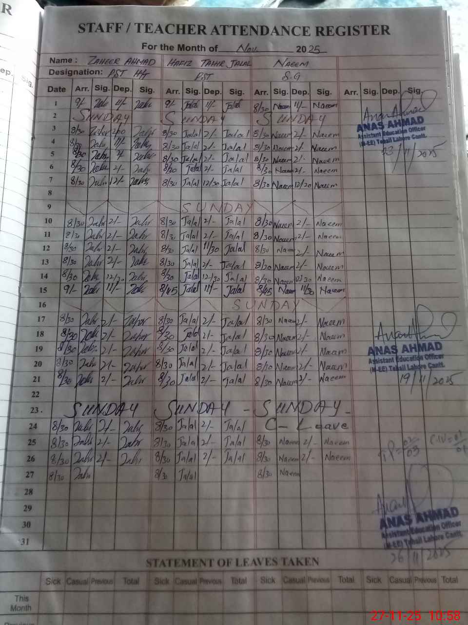 | 35**** | Mu**** Sh**** | Regular | 31 | 0 | 0 | 0 | 0 | 0 | 0 | 31 | 0 | Extraordinary Leave | |