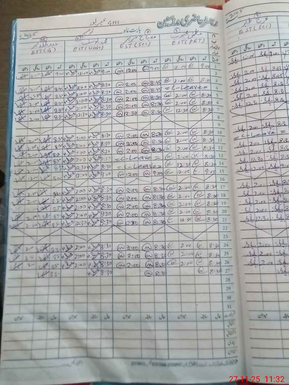 | CNIC | Full Name | Designation | R/C | Absence During Last Calender Month |